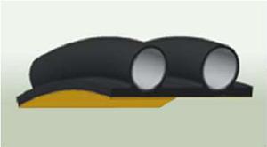 繞在加熱的滾筒模具上,保證了結(jié)構(gòu)壁管熔接縫質(zhì)量。特別是結(jié)構(gòu)設(shè)計(jì)中平料帶的熔接縫被聚乙烯包覆支撐管所覆